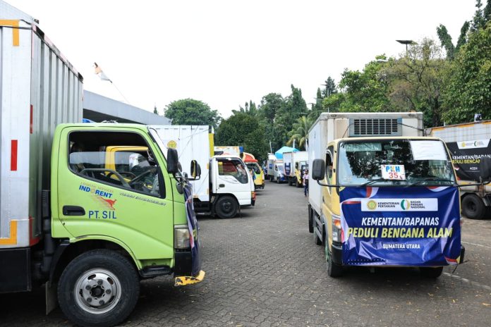Agroplus – Gelombang kepedulian dari Kementerian Pertanian (Kementan) tak pernah surut. Setelah sukses menyalurkan bantuan kemanusiaan pada tahap sebelumnya, kini Kementan di bawah komando Menteri Pertanian Andi Amran Sulaiman, tengah mematangkan persiapan pemberangkatan bantuan Tahap III untuk masyarakat yang terdampak parah akibat banjir dan longsor di Aceh, Sumatra Utara, dan Sumatra Barat. Sejumlah truk pengangkut logistik telah bersiap di Kantor Pusat Kementan, menunggu giliran dimuat.